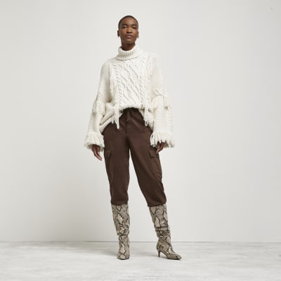 Cream fringe detail cable knit jumper River Island